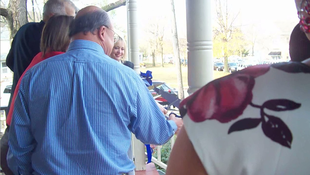 Pictured here are Restoring Hope Transplant House Executive Director Cindy Herbst, transplant recipient Donna Frett and NBC-15's Leigh Mills sharing a few heartfelt words along with Middleton Mayor Kurt Sonnentag, Dianne Hesselbein, Brian Herbst and members of the RHTH Board of Directors at the ribbon cutting ceremony prior to welcoming in guests for an open house. Many more photos and video will be coming shortly.